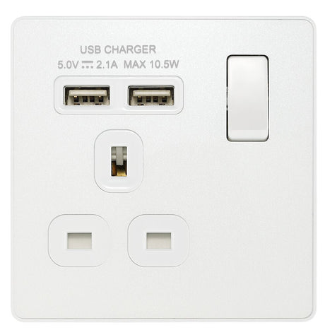 13A 1 Gang Switched Socket with 2 x USB A (2.1A) Pearlescent White