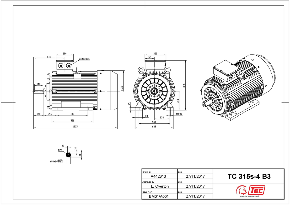 Specs Sheet - TecMotors 110kW 4 Pole T4C Cast Iron Electric Motor