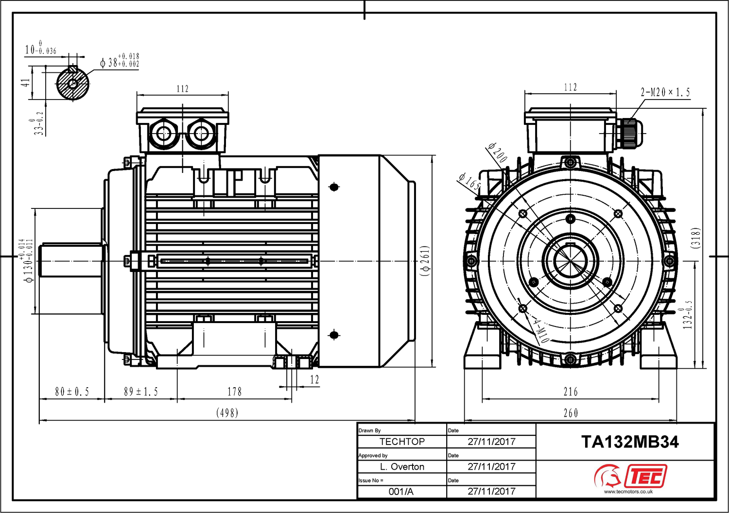 7.5kW 4 Pole Three Phase B34 Foot and Face Mounted Motor Specifications Sheet